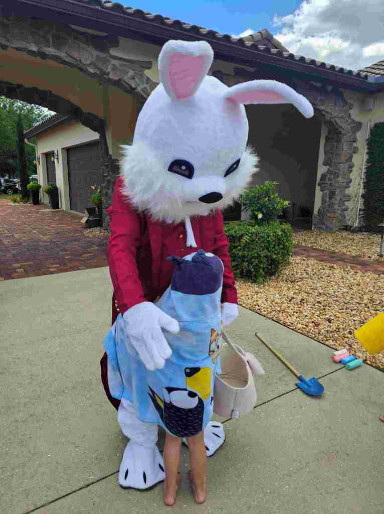 The Easter Bunny teamed up with Sarasota Santas in 2024 and was such a hit that he decided to return in 2025. He is available during Easter week only, for corporate, pre-school, and home visits. See pricing below: